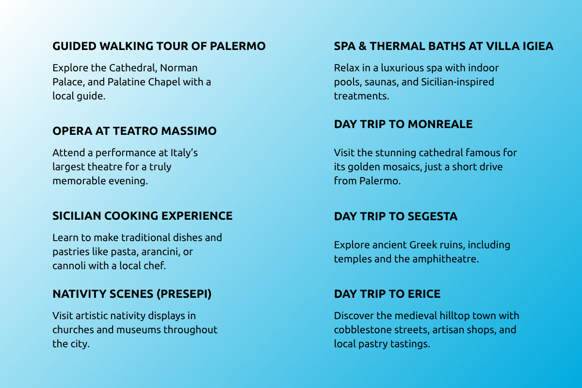 Further enhance your Festive Experience in Sicily by adding one of the following experiences