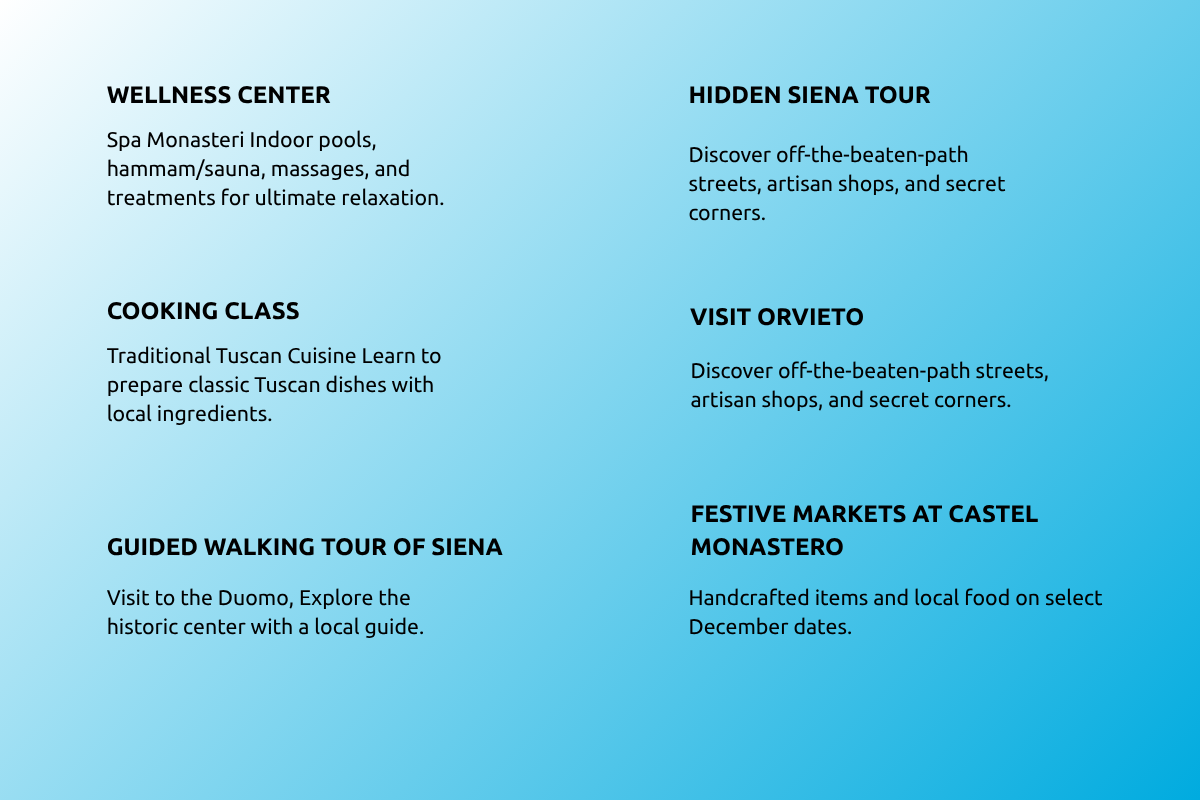 Further enhance your Festive Experience in Tuscany by adding one of the following experiences