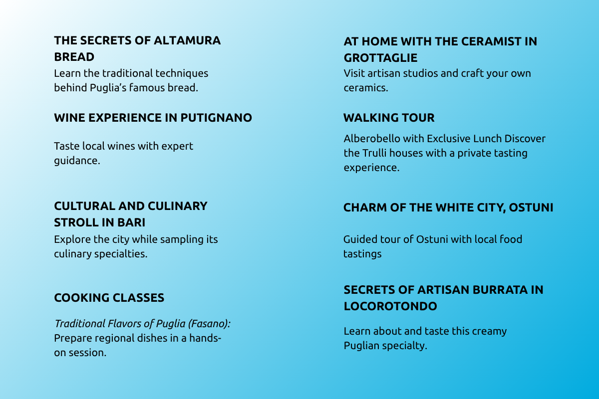 Further enhance your Festive Experience in Puglia by adding one of the following experiences