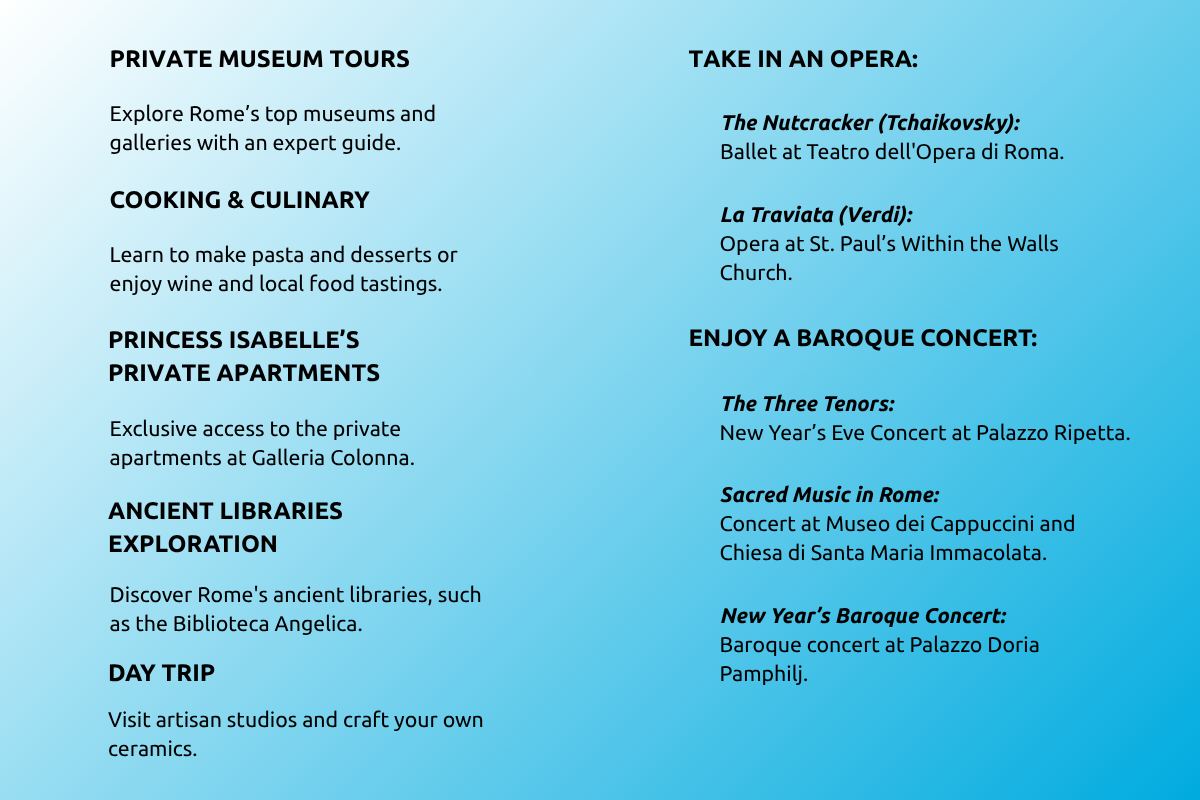 Further enhance your Festive Experience in Rome by adding one of the following experiences