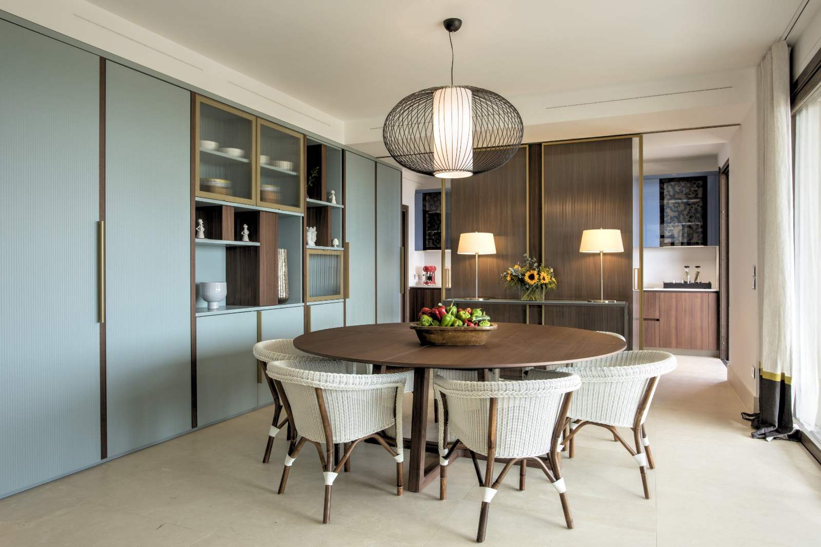 Sleeping arrangements differ slightly from villa to villa, with bedrooms located upstairs or downstairs according to the layout. Each villa includes one grand master bedroom and two deluxe bedrooms each with en suite bathrooms, sea-facing balconies and direct access to your infinity pool. Come nightfall, enjoy an alfresco aperitif and star-lit dinners on your private terrace.